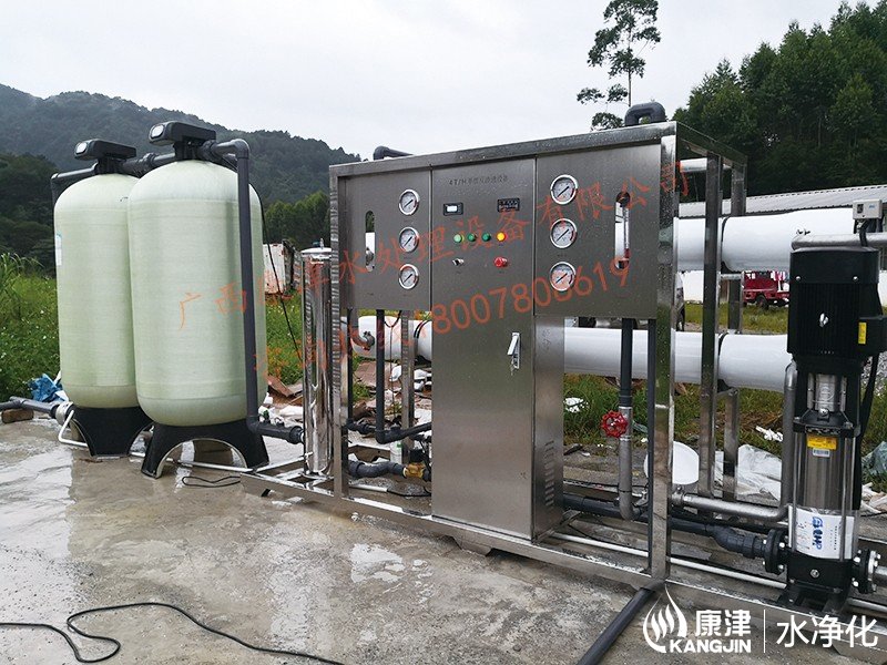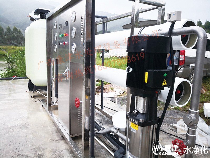 项目名称:上林养殖场每小时4吨反渗透直饮水设备 设备名称:4吨反渗透纯净水设备 工艺流程:山泉水-原水箱-原水泵-石英砂过滤器-活性炭过滤器-阻垢剂加药装置-保安过滤器-高压泵-反渗透装置-用水点...