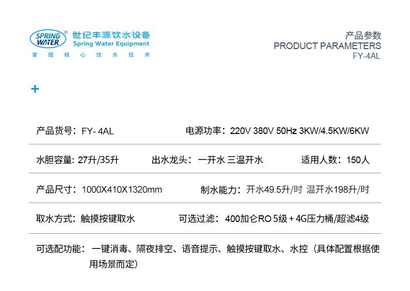 相关标签: 150人用开水温开水节能饮水机触摸型、型、号:FY-4AL