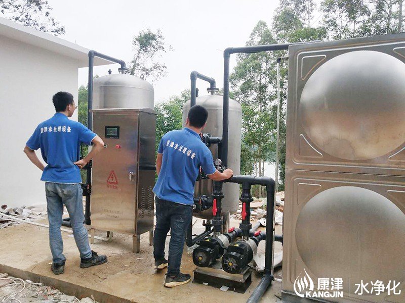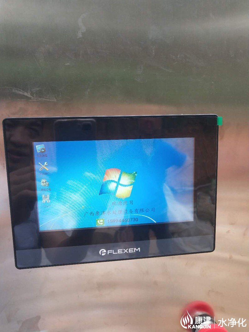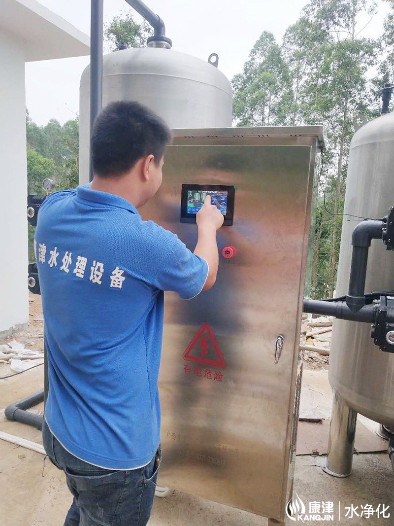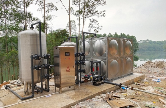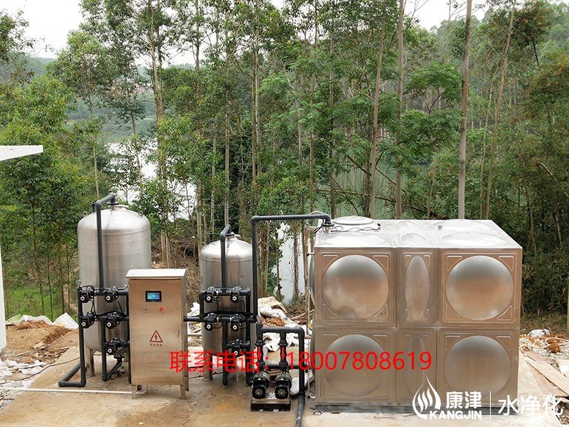 项目名称:来宾市武宣县河水净化工程 设备名称:10吨河水压力式净水设备 工艺流程:河水-石英砂过滤器-净水箱-二氧化氯消毒-加压泵-高位水塔...