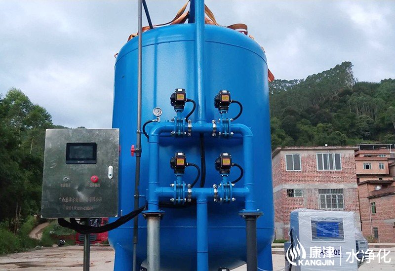 设备是压力式的,其原理是当原水自上而下通过滤料时,水中悬浮物由于吸附和机械阻流作用被滤层表面截留下来;当水流进滤层中间时,由于滤料层中的砂粒排列的更紧密,使水中微粒有更多的机会与砂粒碰撞,于是水中凝絮物、悬浮物和砂粒表面相互粘附,水中杂质截留在滤料层中,从而得到澄清的水质。经过滤后的出水悬浮物可在3毫克/升以下。
